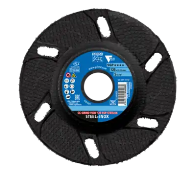 The innovative Pferd CC-GRIND VIEW grinding disc combines a unique design with VICTOGRAIN, one of the most effective, precision-formed abrasives in the world. The viewing pane enables users to work precisely whilst monitoring the work process. Suitable for surface grinding, chamfering, deburring and work on weld seams.