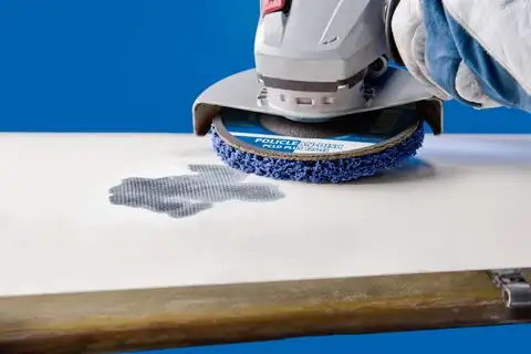 The Pferd POLICLEAN disc PCLD PLUS is a non-woven cleaning material is glued onto a glass-fabric base. This makes POLICLEAN discs suitable for use in face-down grinding. For coarse cleaning work, e.g. removing paint, scale, heat discolouration, rust and adhesive residue. POLICLEAN is a coarsely structured, abrasive, non-woven cleaning fabric that was developed from a special combination of synthetic fibres and abrasive grain.
